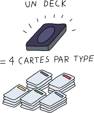 C’est un paquet de 20 cartes contenant 4 cartes pour chacun des 5 types.